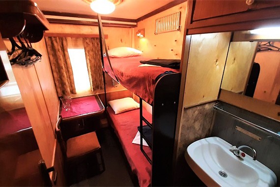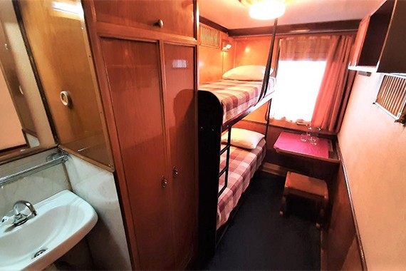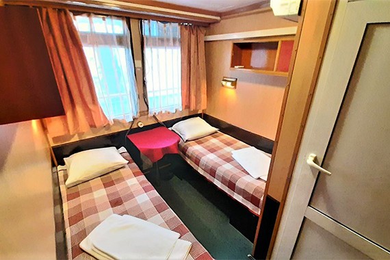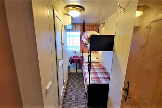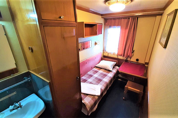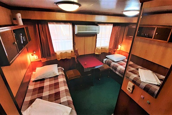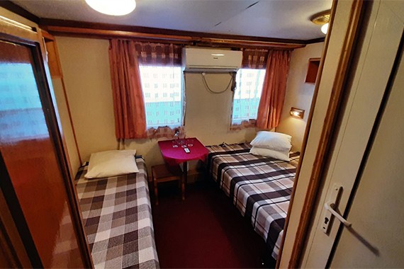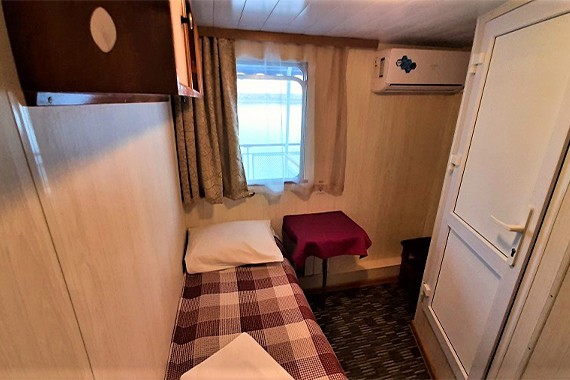 На борту теплохода 103 каюты разных категории от эконом-класса до кают категории «Люкс». Есть каюты со всеми удобствами (санузел, душ, кондиционер), а также с частичными удобствами (раковина). 2 каюты класса «Люкс», 6 одноместных кают класса «Сигма», 1 двухместная каюта класса «Сигма», 4 трёхместных комфортабельные кают класса «Альфа», 18 двухместных комфортабельных кают классов «Омега фронт», «Омега», «Гамма», 2 трёхместных каюты класса «Омега», 4 четырёхместных каюты класса «Бета», 2 одноместные каюты 1 класса, 7 двухместных кают 1А класса, 45 двухместных двухъярусных каюты 1Б, 2А, 3А классов, 7 четырёхместных двухъярусных кают 2Б класса.