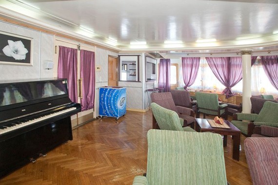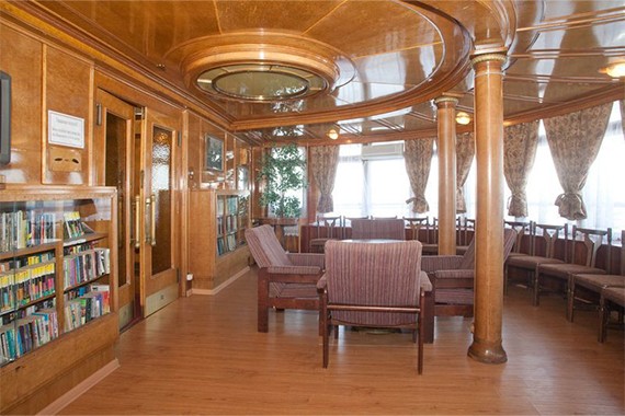 «Михаил Кутузов» предоставляет туристам собственную библиотеку и уютные кресла для спокойного досуга. Салон оснащен панорамными окнами, что обеспечивает прекрасный вид в процессе движения судна.